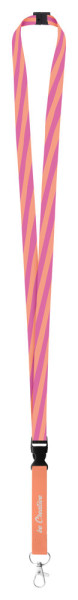 Polyester-Lanyard, 15mm breit, mit abnehmbarem Metall-Karabiner, Panikverschluss und vollfarbiger Bedruckung. Der Preis ist inkl. Sublimationsdruck auf beiden Seiten. Mindestmenge: 100 Stk.