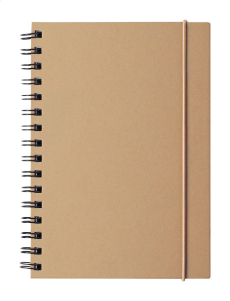 Spiral-Notizbuch aus recyceltem Karton mit Gummiband. 80 linierte Seiten, Größe A5. mehr