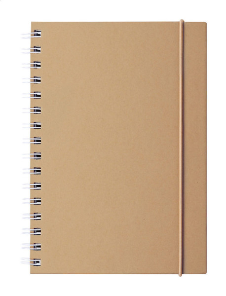 Spiral-Notizbuch aus recyceltem Karton mit Gummiband. 80 linierte Seiten, Größe A5. mehr