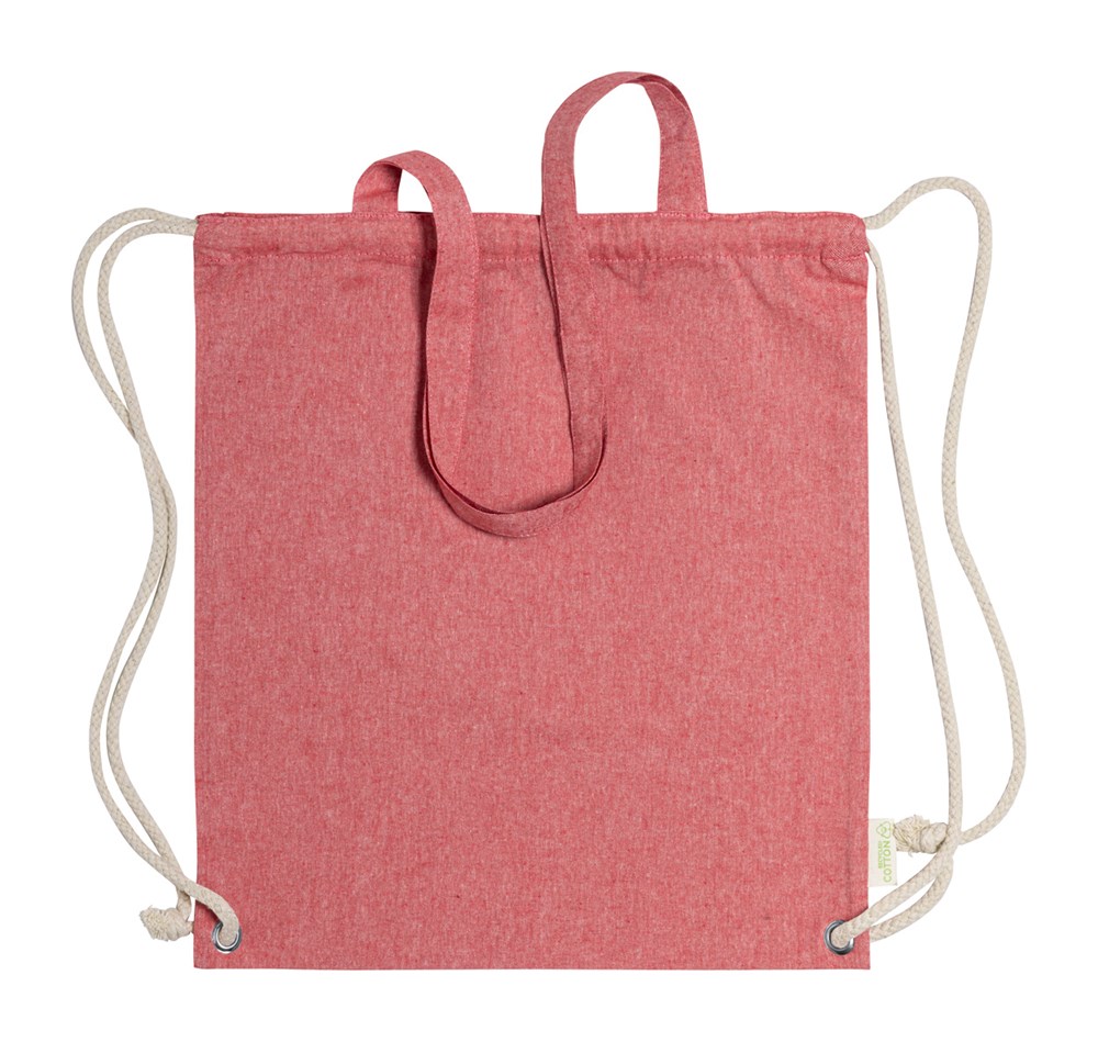 Turnbeutel aus recycelter Baumwolle mit dicken geflochtenen Kordeln und langen Griffen. Auch verwenbar als Einkaufstasche. Material: 100% recycelte Baumwolle (140 g/m²).