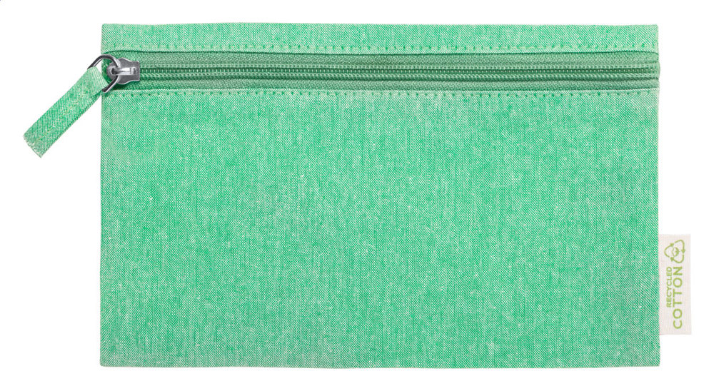 Reissverschluss-Kosmetiktasche aus 100% recycelter Baumwolle.