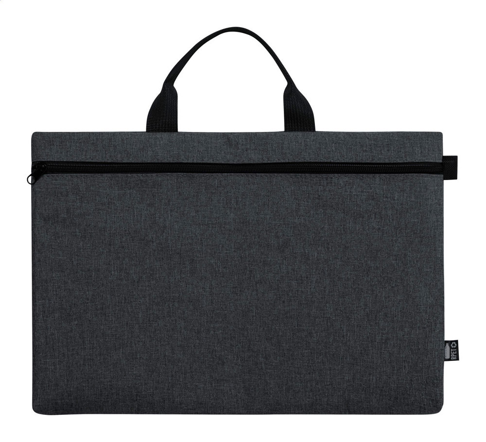RPET Dokumententasche mit einem Reißverschlussfach. Material: 600D RPET Polyester (mit RPET-Label).