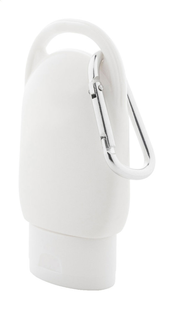 Sonnencreme im Kunststoffbehälter mit farblich abgestimmtem Deckel und Karabiner. SPF: 30. Inhalt: 30 ml