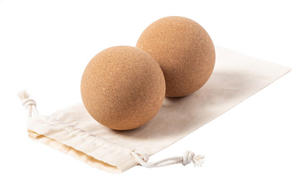 2-teiliges Massageballset aus natürlichem Kork im Baumwollbeutel. Sie ermöglichen es, sich selbst zu massieren und Verspannungen in verspannten Muskeln und schwer zugänglichen Stellen zu lösen.