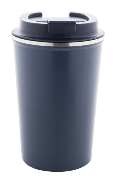 Doppelwandiger Thermobecher aus Edelstahl mit Trinkdeckel. Füllmenge: 350 ml.