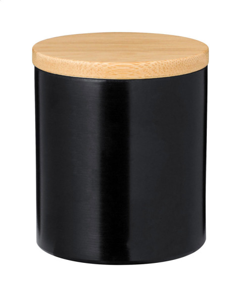 Vanille-Duftkerze in Behälter aus Aluminium mit Bambusdeckel. mehr