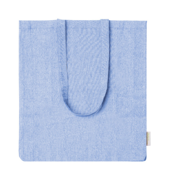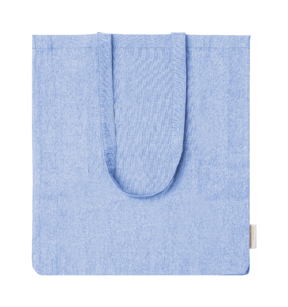 Einkaufstasche mit Seitenfalte aus recycelter Baumwolle und langen Henkeln. Material: 100 % recycelte Baumwolle, 140 g/m². MIt Label Recycelte Baumwolle.