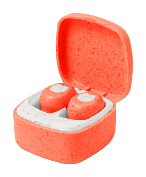 Ökologischer Weizenstroh-Kunststoff, kabellose Stereo-Ohrhörer (TWS) mit Freisprechfunktion im Ladeetui. Inklusive USB-Ladekabel.