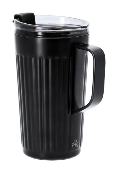 Doppelwandiger Isolier-Thermobecher aus recyceltem Edelstahl mit Trinkdeckel. Füllmenge: 350 ml.