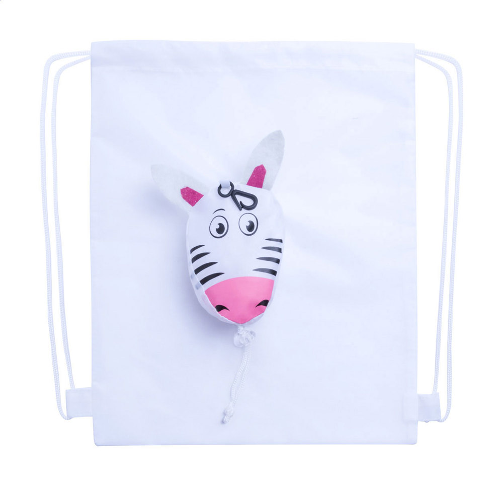 Faltbarer Turnbeutel mit Zugkordel, Etui in Tierform und Karabiner aus Kunststoff, 190T Polyester.