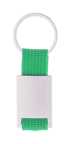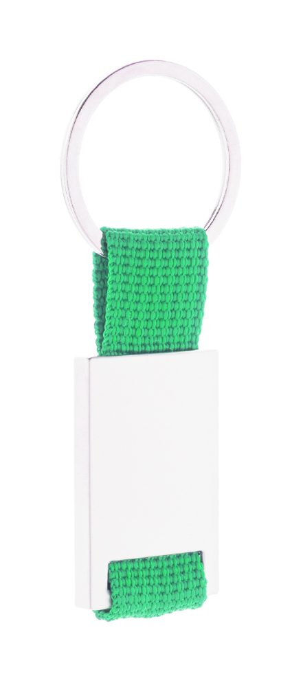 Schlüsselanhänger aus Metall und Polyester.