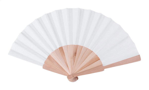 Handfächer aus Polycotton mit Holzrippen.