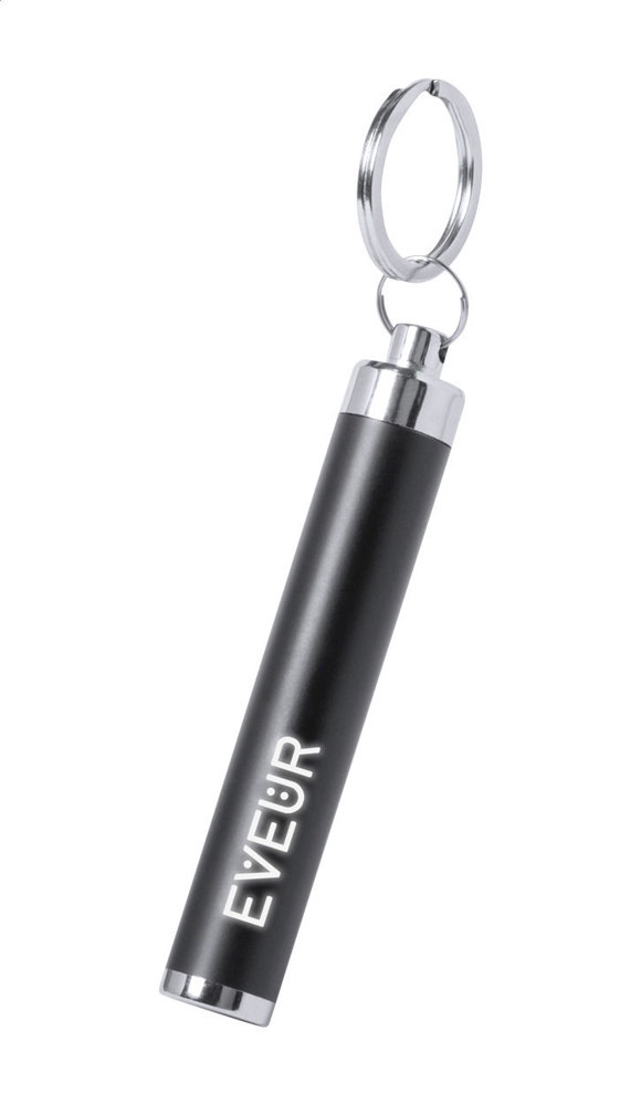 Mini-Taschenlampe mit 1 LED, Kunststoffgehäuse mit Metall-Schlüsselring. Das gravierte Logo aur dem Korpus wird beleuchtet. Inkl. Batterien (Knopfzellen).