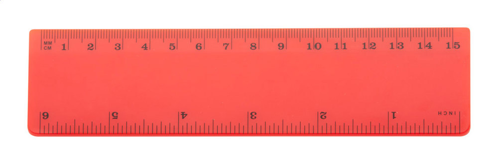 Lineal aus Kunststoff, 15 cm mit Skala in cm und Zoll.