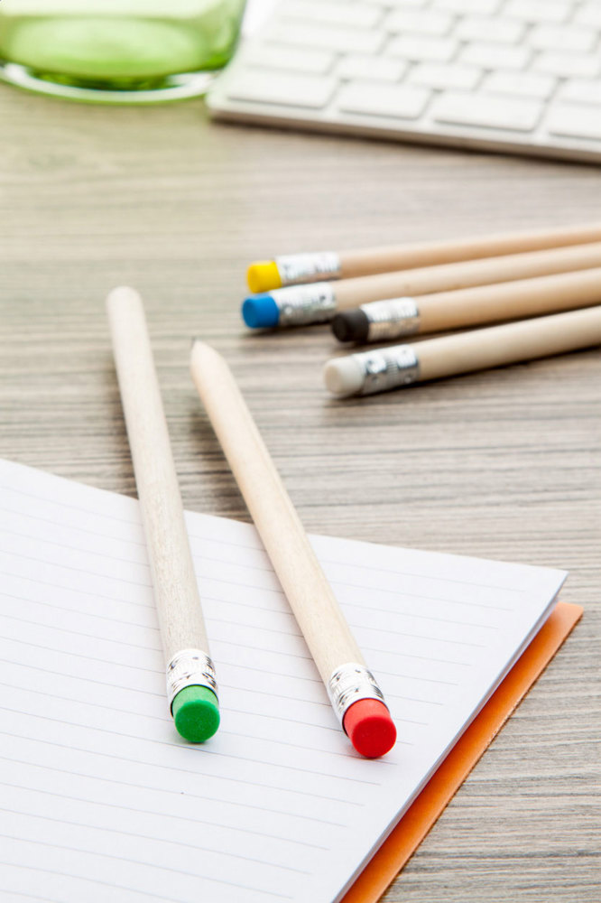 Holzbleistift mit farbigem Radiergummi, ungespitzt. mehr