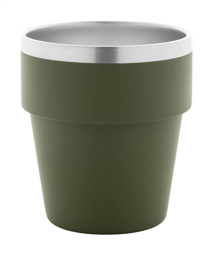 Doppelwandiger, isolierter Thermobecher aus recyceltem Edelstahl. Füllmenge: 250 ml. Stapelbar.