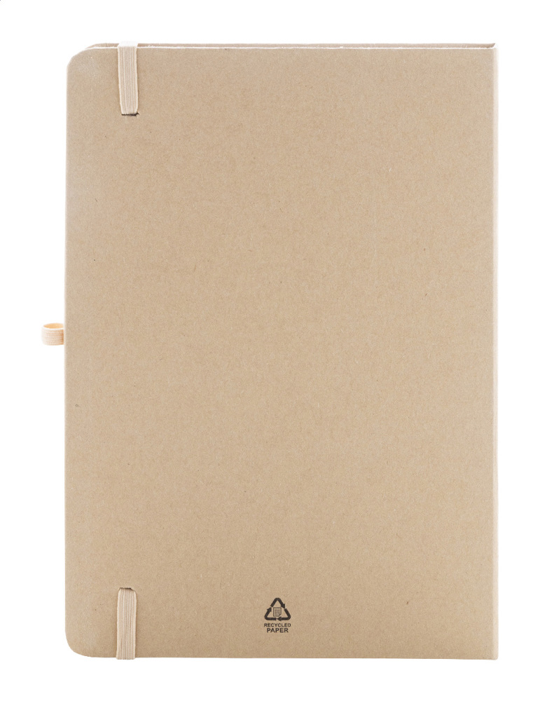 Notizbuch mit Umschlag aus recycelter Pappe und 70 Blankoseiten aus Recyclingpapier. Die Innenseite des Umschlags enthält 25 Haftnotizen, 125 Seitenmarker und ein Kartenfach. Mit Gummibandverschluss und Stifthalter. Format: A5.
