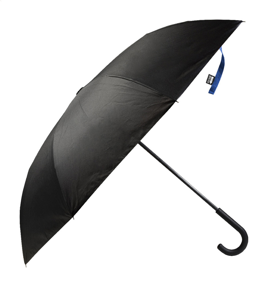 Manueller, windproof Regenschirm mit 8 Segmenten, doppellagigem zweifarbigem Schirmdach, Metallgestell, Glasfaserrippen und gummiertem Griff. Material: 190T RPET Pongee. Mit RPET-Label.