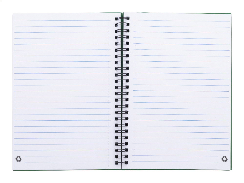 Spiralnotizbuch mit 80 linierten Blättern aus Recyclingpapier. Format A5.