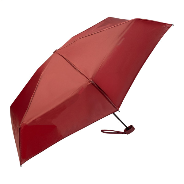 Manueller Mini-Windproof-Taschenschirm mit 6 Segmenten in farblich abgestimmter Hülle und festem Reißverschußetui aus EVA. Mit Metall-Rahmen, Fiberglas-Speichen und kompaktem Griff mit Handschlaufe. Material: 190T RPET Pongee. Mit Label RPET.
