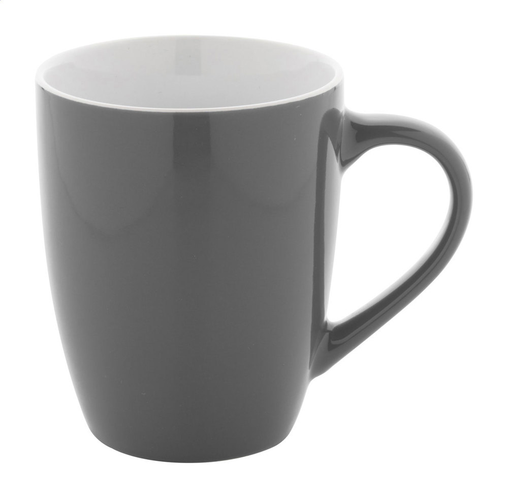 Hochwertiger, farbiger Keramikbecher mit weißer Innenseite, 340 ml. In Kraftpapierbox.