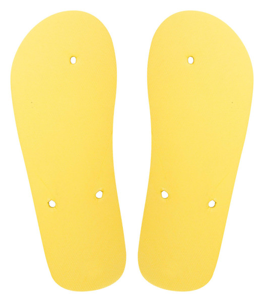 Zehensandalen mit PE-Sohle und PVC-Riemen. Die Farbe der Sohle und des Riemens kann individuell kombiniert werden. Mindestbestellmenge: 50 Paar je Farbkombination und Größe.