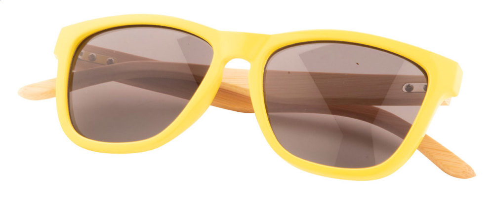 Sonnenbrille mit Kunststoffrahmen und Bügel aus Bambus. Mit UV400 Schutz. mehr