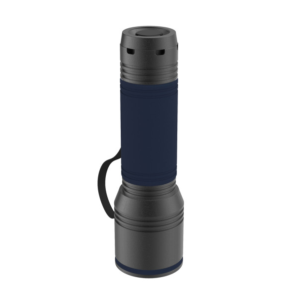 Diese leistungsstarke und wiederaufladbare Taschenlampe aus Aluminium ist ein Eigendesign für die Marke REEVES aus dem Hause REFLECTS. Die Taschenlampe ist silbern oder schwarz eloxiert erhältlich, hat ein schwarzes Griffband und kann mit einem Griff-Sleeve aus Silikon und/oder einem Silikonring kombiniert werden. Die Silikonkomponenten sind in vielen verschiedenen Farben ab Köln verfügbar. Selbstverständlich ist sie auch ohne Silikon-Komponenten erhältlich.
