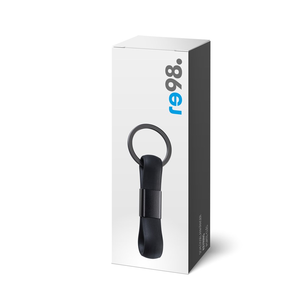 Ein Hingucker am Schlüsselbund mit angenehmer Haptik. Die Silikonschlaufe in Schwarz hat eine schwarze Spange aus Metall. Auf dieser können Sie Ihr Logo perfekt mit einer edlen Lasergravur in Szene setzen.