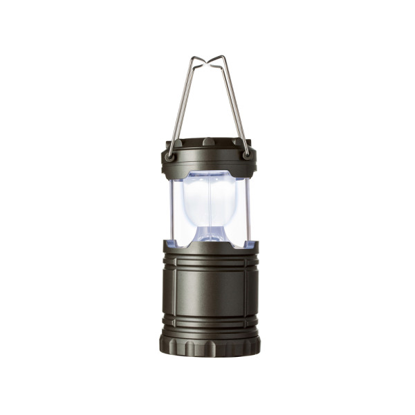 Batteriebetriebene Camping- oder Gartenleuchte, die Sie ganz bequem durch Herausziehen und Hereinschieben an- und ausschalten können. Der Reflektor ermöglicht eine angenehme Lichtatmosphäre bei sechs verbauten LED-Leuchten (1,5 Watt, 70 Lumen). Die Lampe kann am Bügel aufgehangen werden. Per REFLECTS-UV-Print lässt sich der Deckel der Lampe vollflächig veredeln.