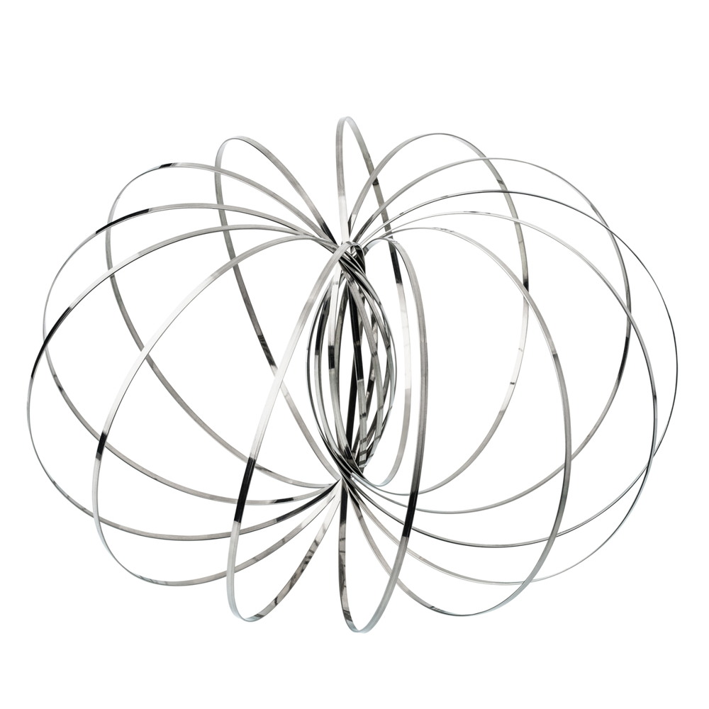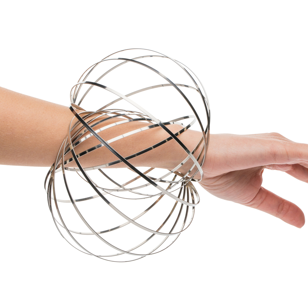 Der neueste Hype für Stressgeplagte und Hobby-Jongleure: Das interaktive Spielzeug für Erwachsene wurde Anfang der neunziger Jahren erfunden und ist eine skulpturale Ringspirale, die ineinander verschränkt ist. Man kann sie ganz flach, als Ring zusammenlegen oder zur Skulptur öffnen. Um damit zu spielen, muss man einfach die Hand durch den Zwischenraum der Spirale führen. Sie rollt dann am Arm auf und ab, lässt sich auf den anderen Arm rollen oder an einen Mitspieler weitergeben.Die Spirale wirkt entspannend und ist ideal fürs Büro oder daheim.