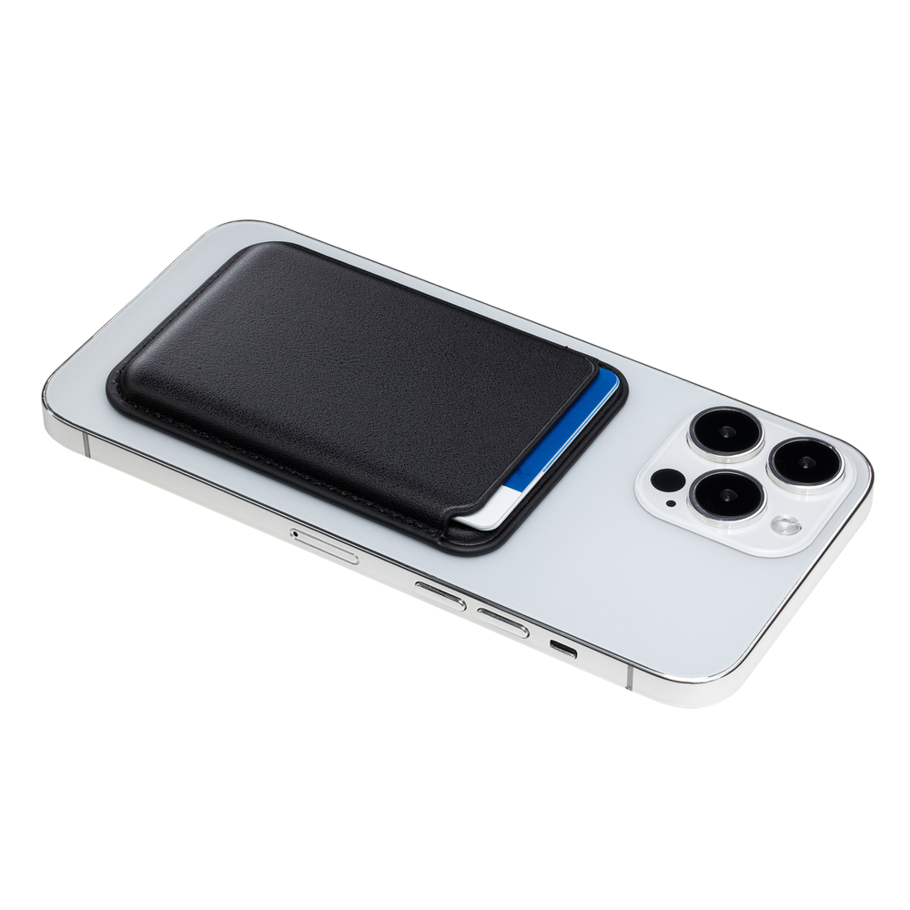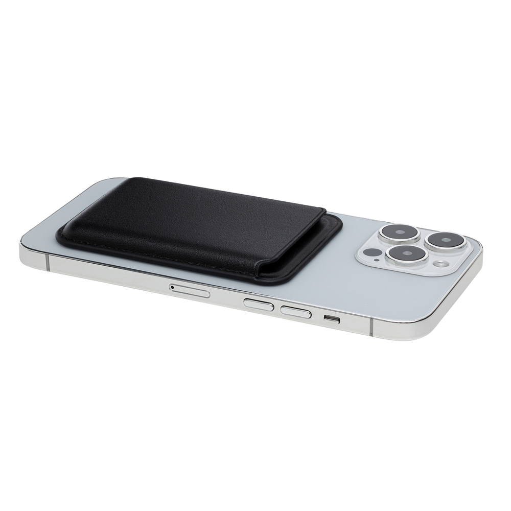Klassische Portemonnaies nehmen viel Platz ein und sind durch bargeldlose Zahlungen oft überflüssig. Eine moderne Alternative bietet dieser schlanke Kartenhalter - RE98-Lefta. Das magnetische Kartenetui aus schwarzem Kunstleder bietet Platz für zwei Karten und lässt sich einfach an MagSafe®-kompatiblen Endgeräten anbringen. So können Sie ihn an die Rückseite Ihres Smartphones fixieren und haben Ihre wichtigsten Karten immer griffbereit.