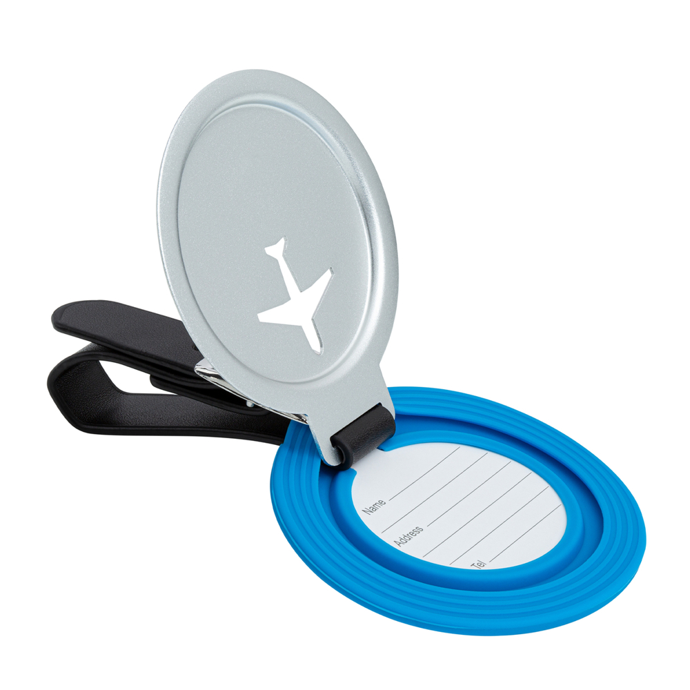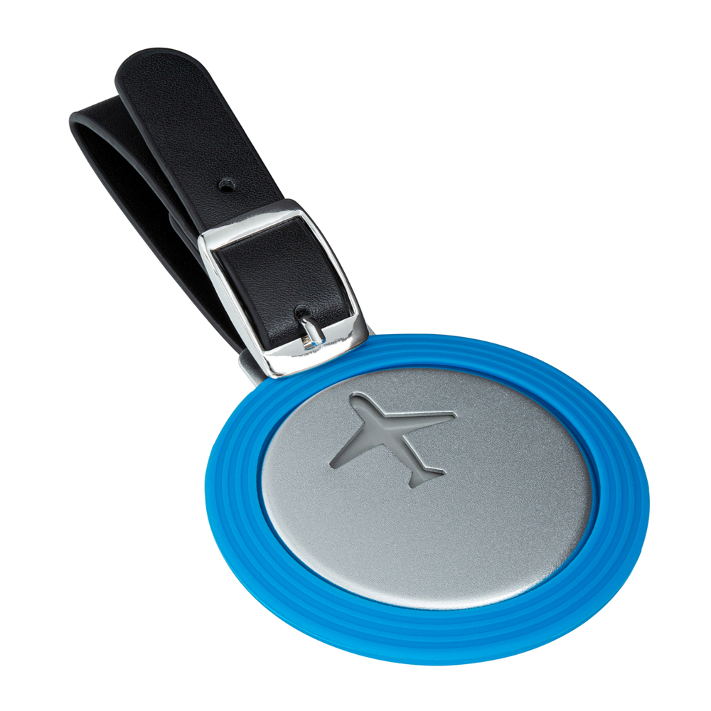 Diese REFLECTS® Eigenentwicklung ist ein unverzichtbarer Begleiter auf jeder Reise. Der Kofferanhänger zeichnet sich durch modernes Design und trendige Farben aus, von dezentem Schwarz-Schwarz bis zu leuchtendem Rot-Silber. Die Aluminiumplatte hat ein ausgestanztes Flugzeug-Motiv auf der Vorderseite und liegt sicher im umschließenden Silikon. Zwischen der Silikonhülle und Aluminiumplatte befindet sich ein Papier-Inlay für Name, Adresse und Telefonnummer. Auf diese Weise bleiben die persönlichen Daten verdeckt. Das Band aus Kunstleder mit Metallschnalle ermöglicht sicheres Befestigen des Anhängers an Koffer oder Rucksack.