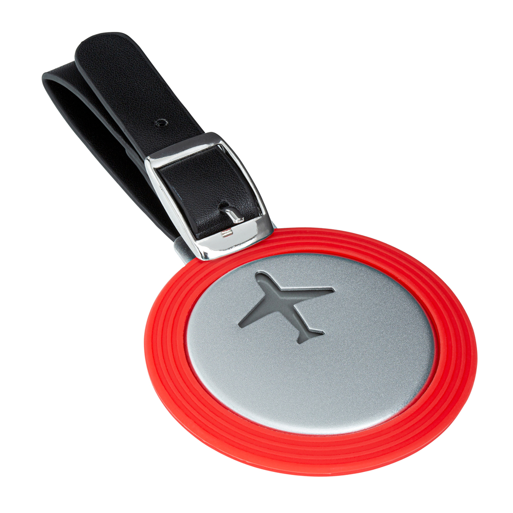 Diese REFLECTS® Eigenentwicklung ist ein unverzichtbarer Begleiter auf jeder Reise. Der Kofferanhänger zeichnet sich durch modernes Design und trendige Farben aus, von dezentem Schwarz-Schwarz bis zu leuchtendem Rot-Silber. Die Aluminiumplatte hat ein ausgestanztes Flugzeug-Motiv auf der Vorder-seite und liegt sicher im umschließenden Silikon. Zwischen der Silikonhülle und Aluminiumplatte befindet sich ein Papier-Inlay für Name, Adresse und Telefonnummer. Auf diese Weise bleiben die persönlichen Daten verdeckt. Das Band aus Kunstleder mit Metallschnalle ermöglicht sicheres Befestigen des Anhängers an Koffer oder Rucksack.