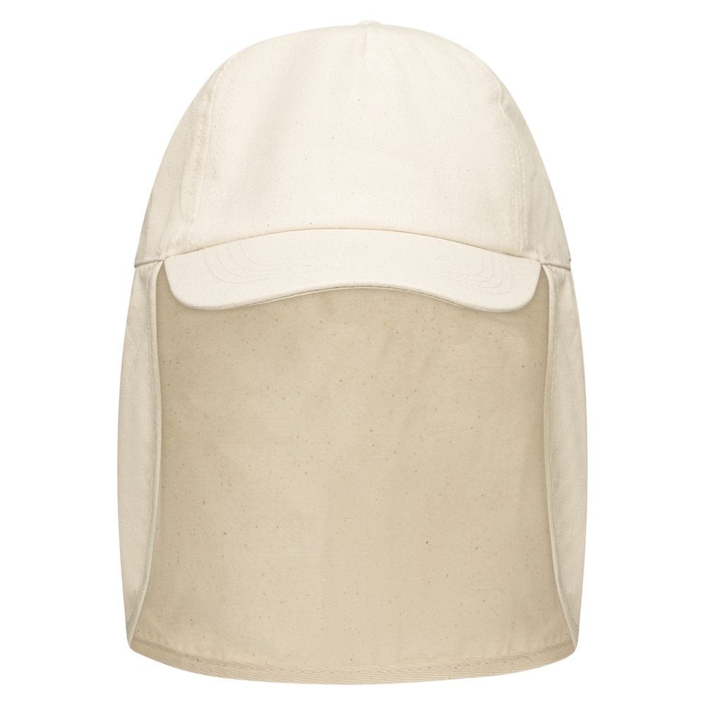 und Nackenschutz! Die Baumwollcap mit fünf Panelen, Snapstrap und Stirnverstärkung kann mit einem Transferdruck veredelt werden. Perfekt für heiße Sommertage!