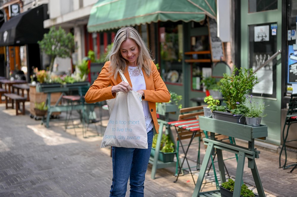 Diese Baumwolltasche mit langen Henkeln ist die perfekte Goodie Bag für Veranstaltungen. Die Tasche hat eine Größe von 38x42 cm und eine Grammatur von 140 g/m².