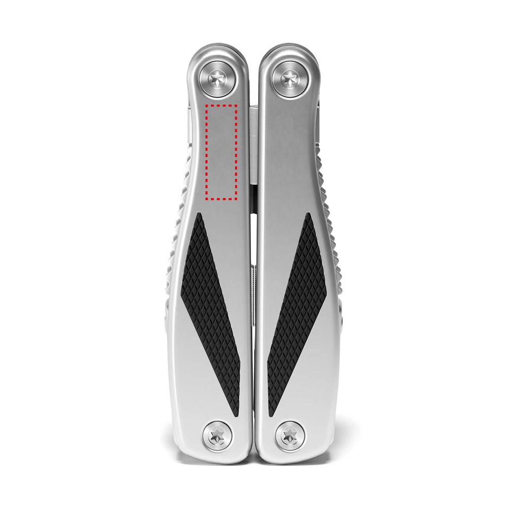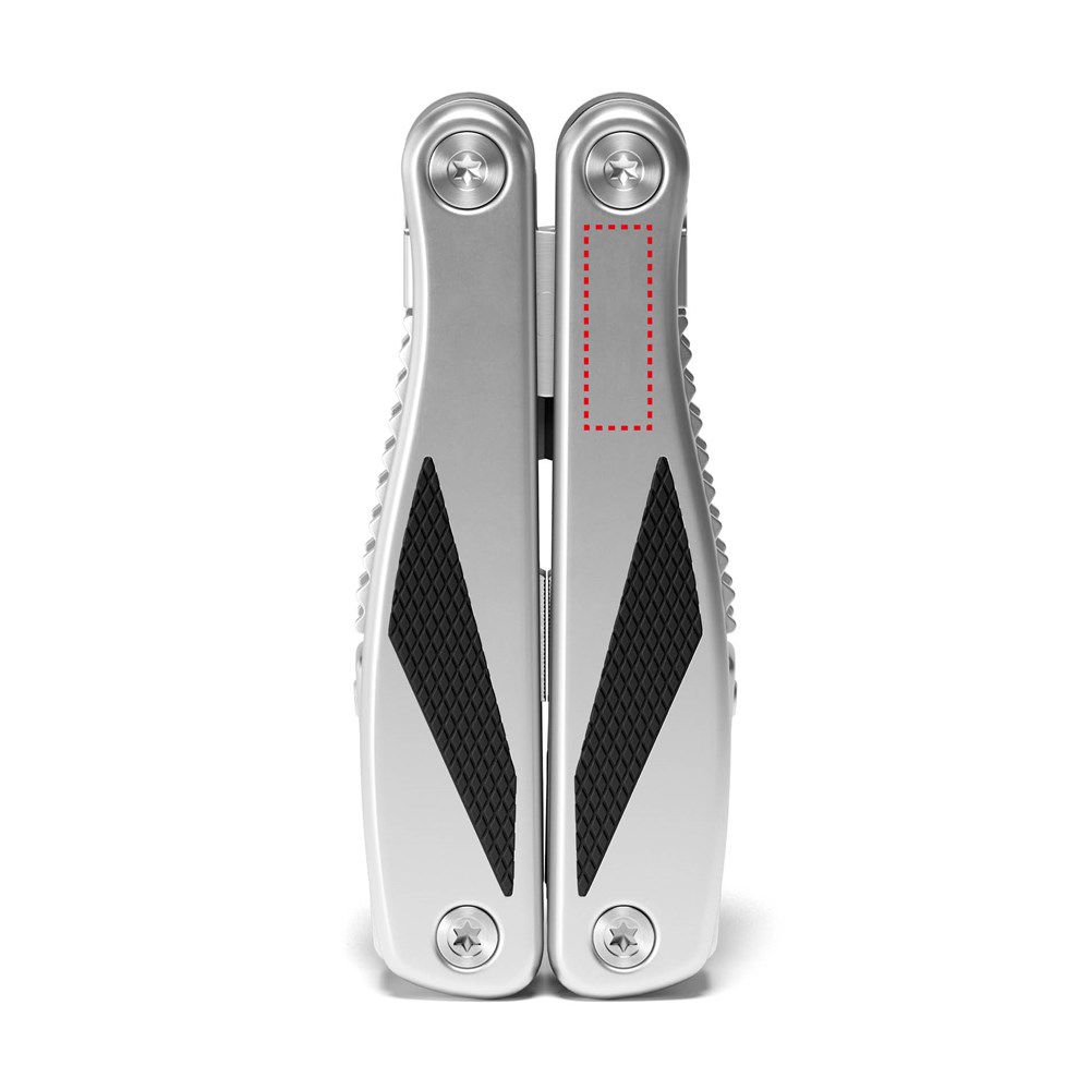 Die vielen nützlichen Funktionen sind ein Mehrwert im Alltag und durch die lange und häufige Nutzung ist ein dauerhafter Werbeerfolg garantiert. Durch die Gummi-Griffeinlagen ist eine sichere Handhabung garantiert, was das Mutltitool für jede Zielgruppe interessant macht.