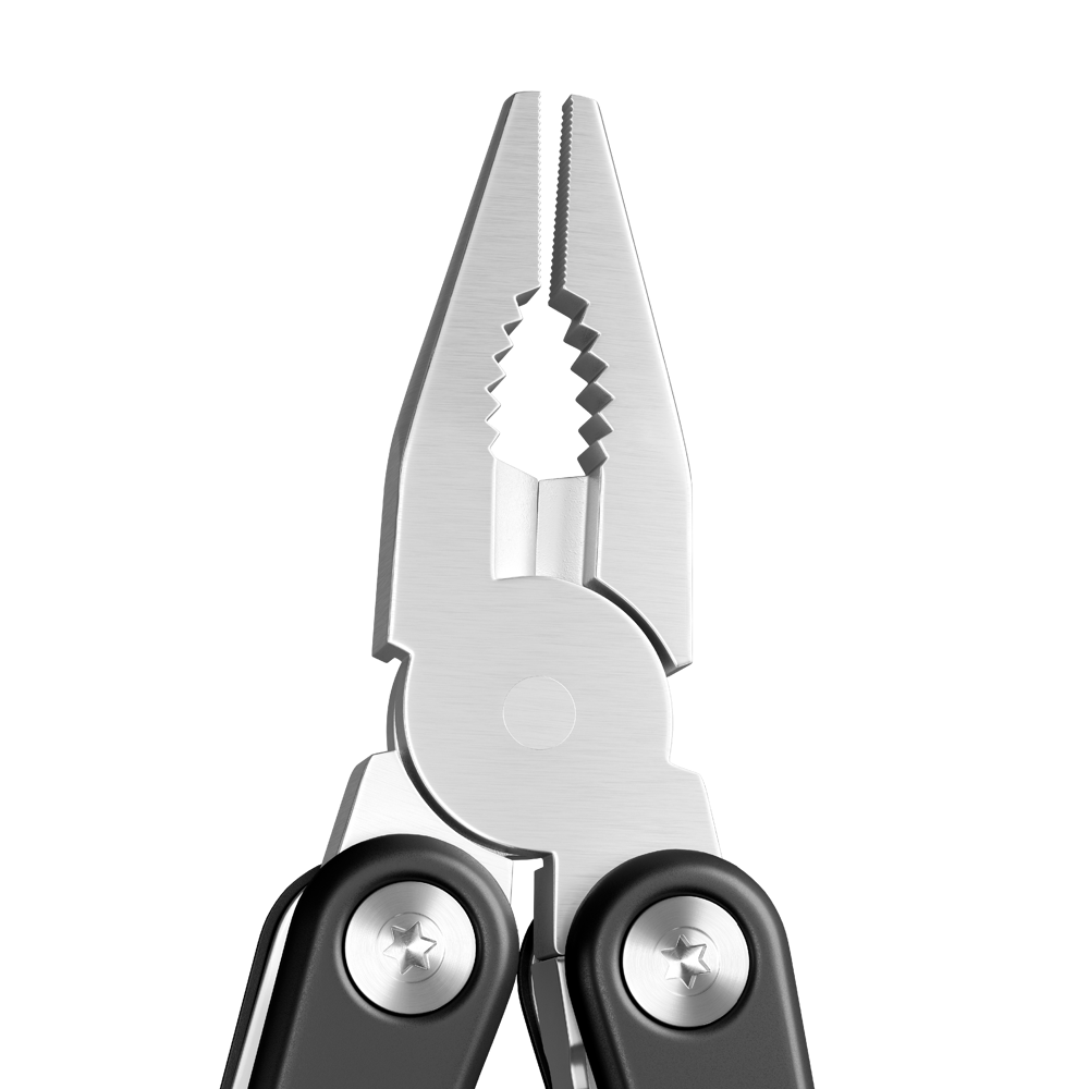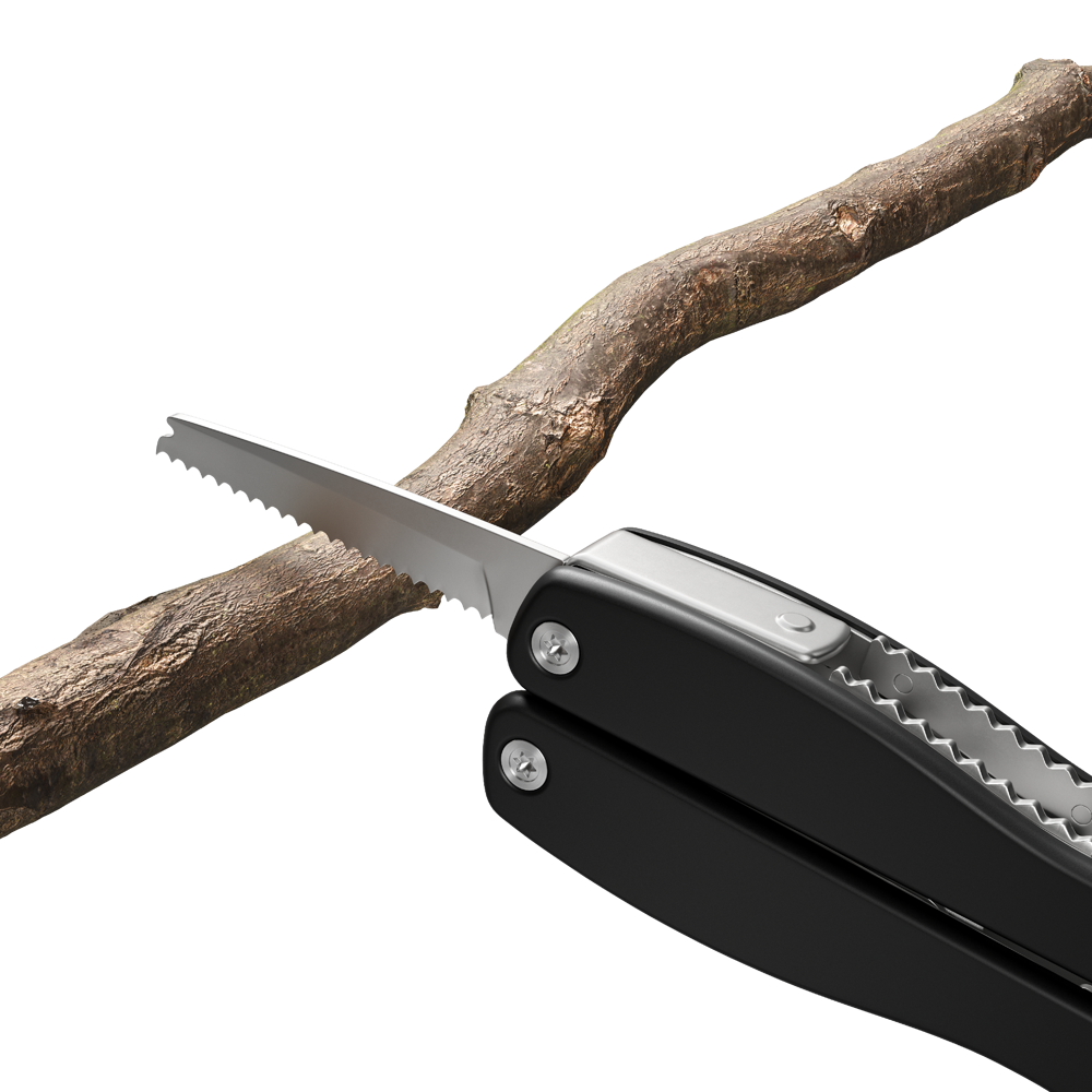 Verlang alles von diesem Multitool! Vor allem, dass es Dich nach Kräften im entscheidenden Moment unterstützt: Schneide Drähte, dreh Schrauben, nutze seine kräftige gegossene Zange und sei Dir dabei immer sicher, dass sich die Funktionen durch die Arretierung verlässlich festmachen und einfach wieder lösen lassen. Mit seinen schwarzen Aluminiumgriffen und der mitgelieferten Gürteltasche ist unser CRAFTER tool auch optisch ein ernstzunehmendes Werkzeug!
