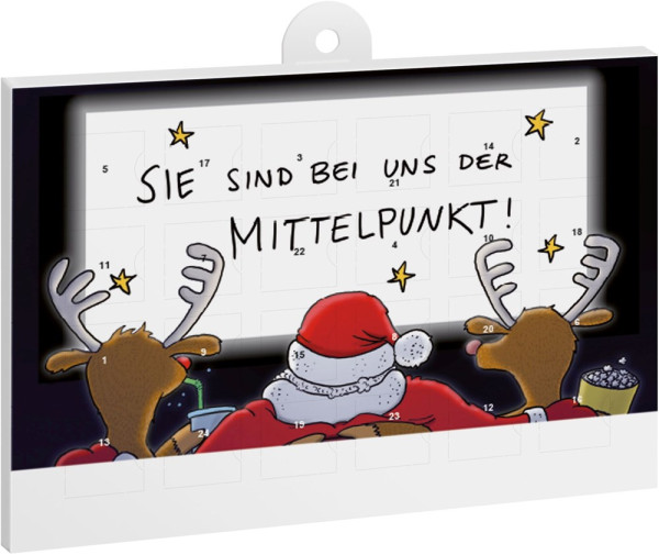 A5-Schoko-Adventskalender mit Werbeeindruck - Im Mittelpunkt