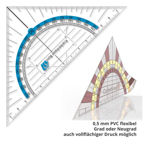 Ideales Werbegeschenk für Arztpraxen und Krankenhäuser. Für Finanzdienstleister, Stadtwerke-Betriebe, Unternehmensberater, Rechtsanwälte oder Architekten als Werbeartikel. Unsere Geodreiecke sind nützliche Give-Aways auf Messen und Sportevents.