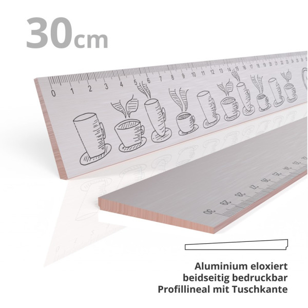 Das Metall-Lineal aus silber eloxiertem Aluminium mit präziser gedruckter Wunschskala. Robustes und günstiges Profillineal aus Aluminium für Büro, Schule, Arbeitsplatz und mehr.