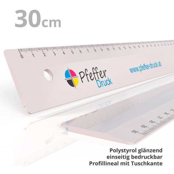 Unser kleines, günstiges Profillineal mit abgeschrägter Skala, Aufhängeloch und Tuschekante - perfekt für Büro, Schule, Arbeitsplatz und mehr.