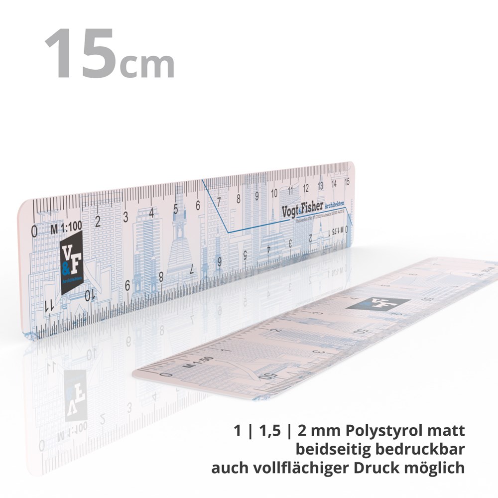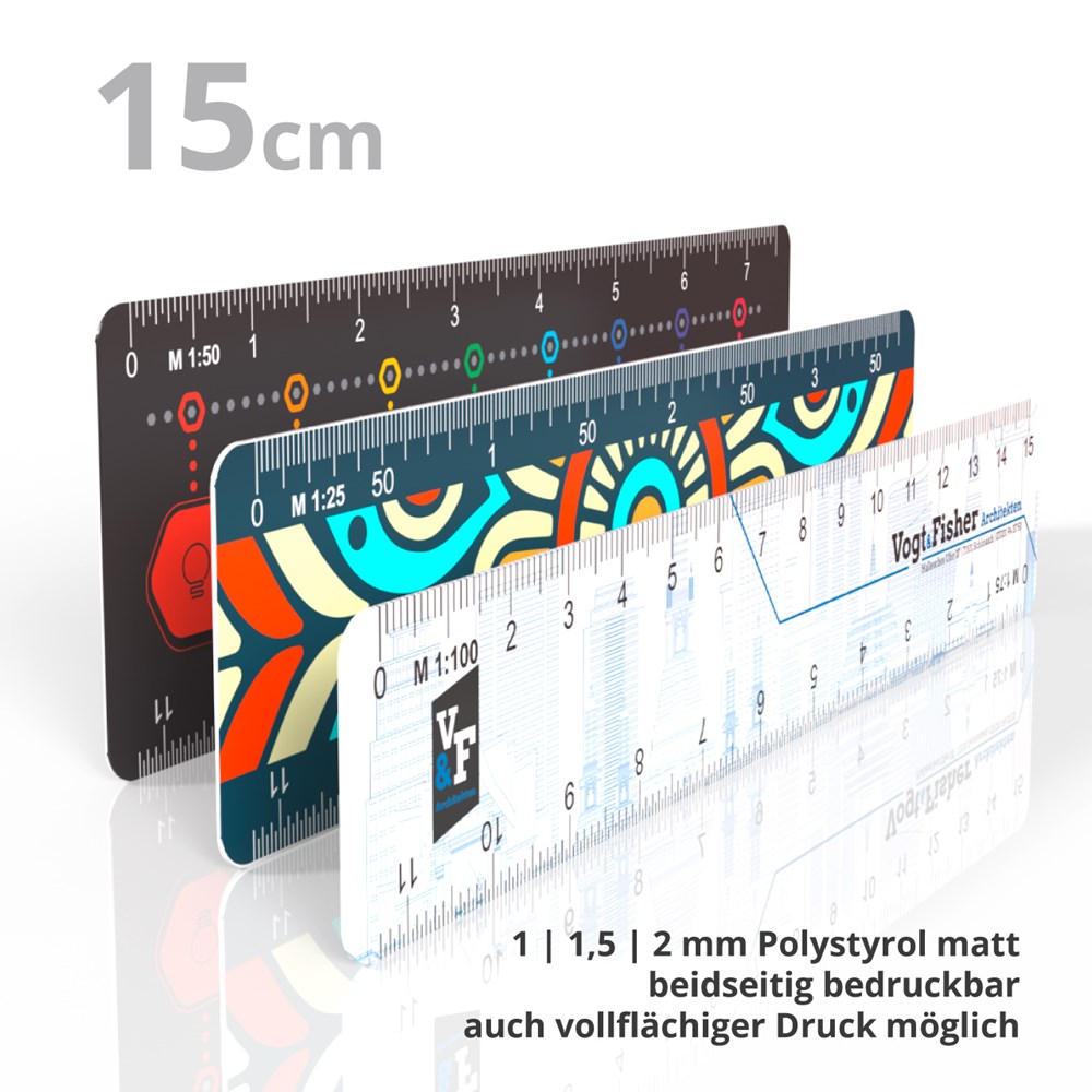 Kunststoff kann mehr! Flaches Reduktionslineal weiß matt mit präzisen gedruckten Skalen.... mehr