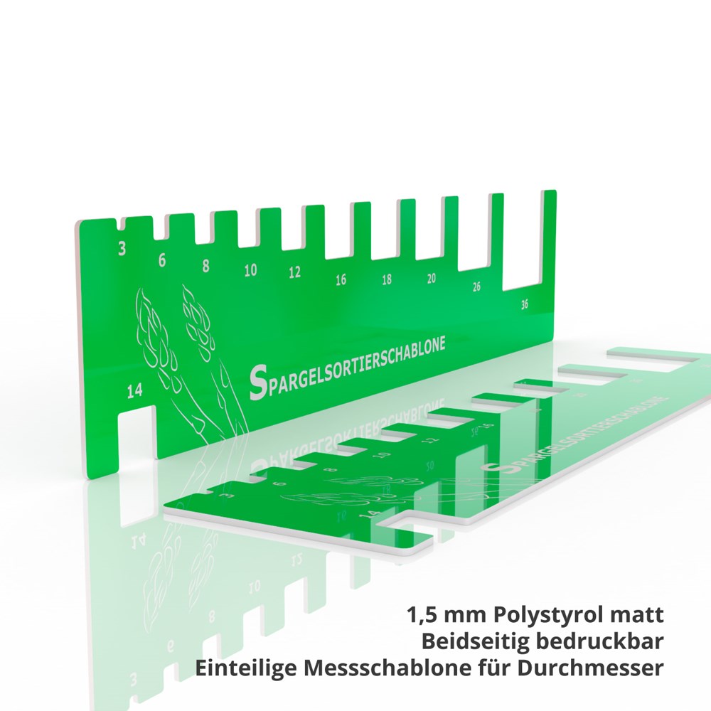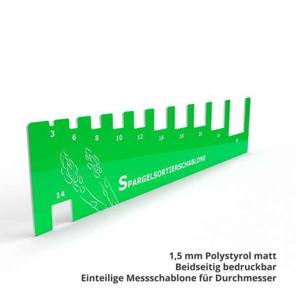 • Kunststoffschablone mit Ausschnitten zur Bewertung der Spargelstärke