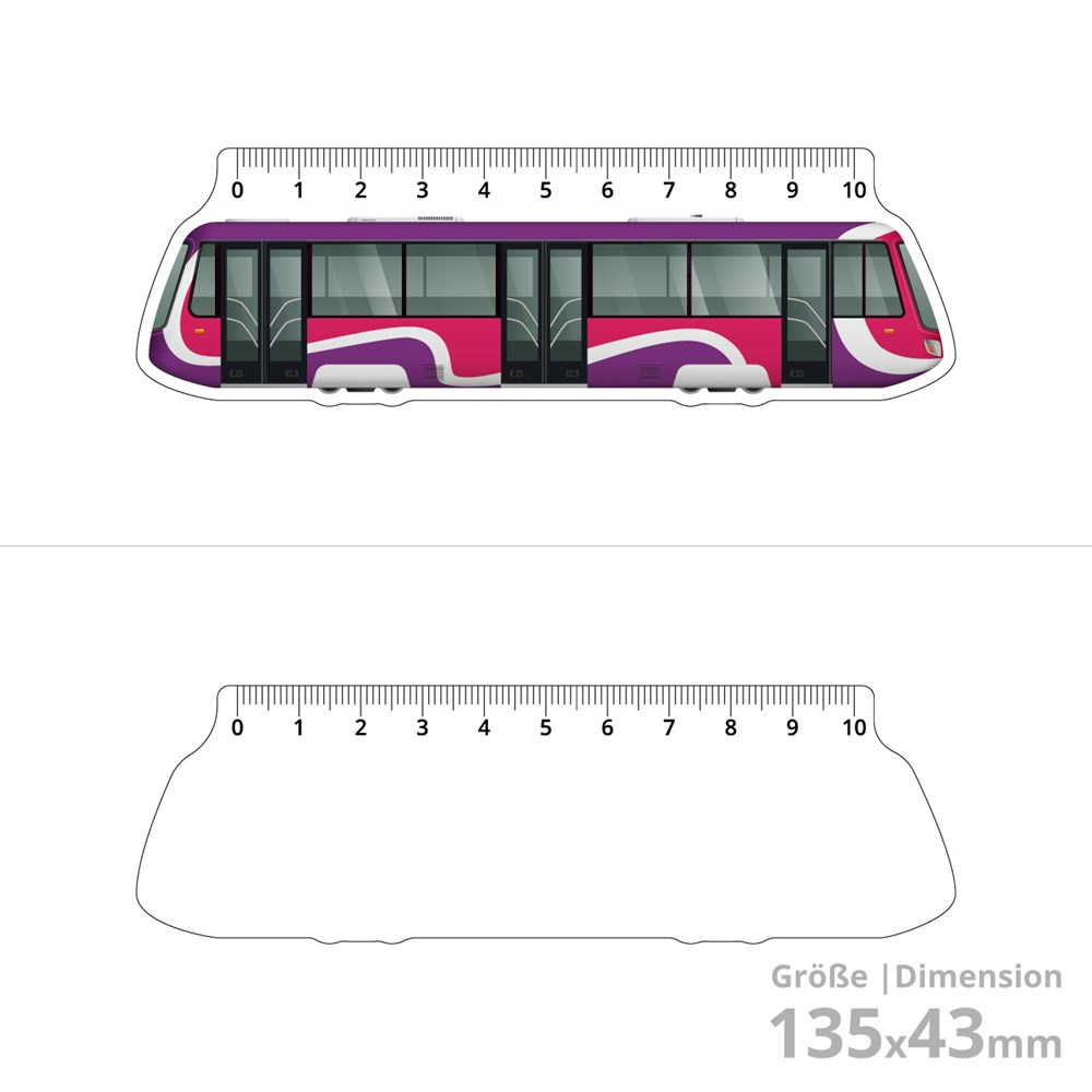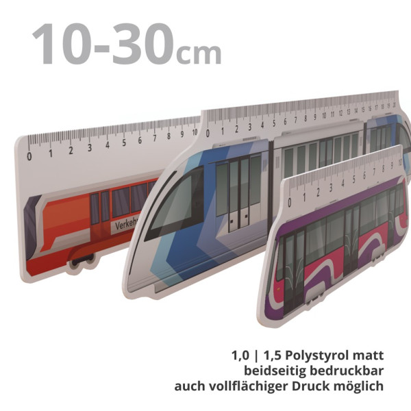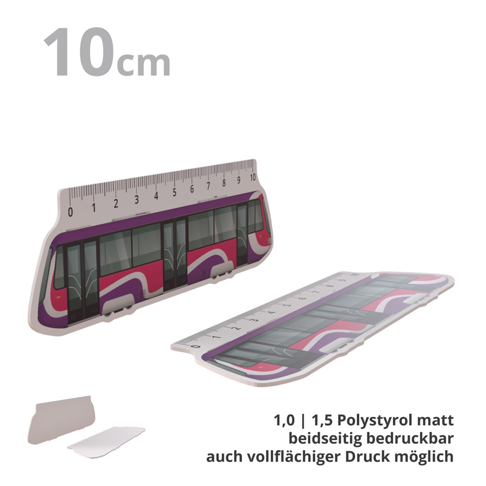 Auf Schienen zum Erfolg. Flaches Lineal weiß matt mit präzisen Skalen und konturgeschnitten. Mit... mehr