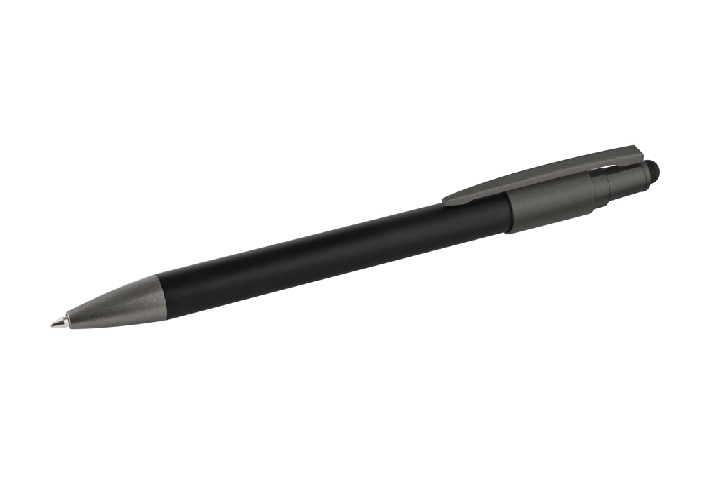 Schreiben, Drehen, Entspannen –Der „SpinPointPro“ ist der innovative Kugelschreiber, der Schreiben und Spaß vereint. Gefertigt aus Aluminium, bietet er deutsche Tinte, eine langlebige TungstenKarbid-Spitze und eine Schreibleistung von über 1000 Metern. Der integrierte Spinner am oberen Ende dient der Entspannung und bietet eine interessante Werbefläche für kreative Köpfe, die funktionales Design mit einem spielerischen Twist lieben. Mit Touchpoint zur einfachen Bedienung Ihres Pads/Handys ohne Fingerdatschen, mit Clip.