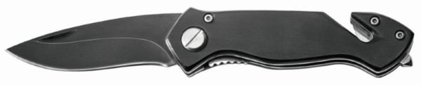 Kompaktes Taschenmesser im Aluminiumgehäuse mit Gurtcutter und Nothammer. Qualitätsstahlklinge, VPE 200. Designkarton