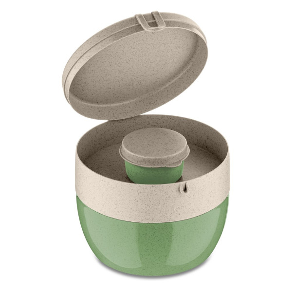 Die perfekte Box für alle Meal Prepper. Die kompakte Dose ist ideal für kleine Nudelgerichte, Bowls, Salate und Oatmeals. Das Oberteil bietet genügend Stauraum für Obst oder Nüsse, die kleine Minidose ist für Gewürze, Dressings oder Honig gedacht. Alle Zutaten werden in der Dose sauber voneinander getrennt und bleiben appetitlich bis zur Mahlzeit. - Der nachhaltige Markenartikel – made in Germany. Für unsere Kollektion verwenden wir vorwiegend biozirkuläre Kunststoffe, die aus gebrauchten Speiseölen recycelt werden. Die Produkte sind extrem langlebig, frei von Melamin, zu 100% recycelbar und werden fair und klimaneutral in Deutschland produziert.