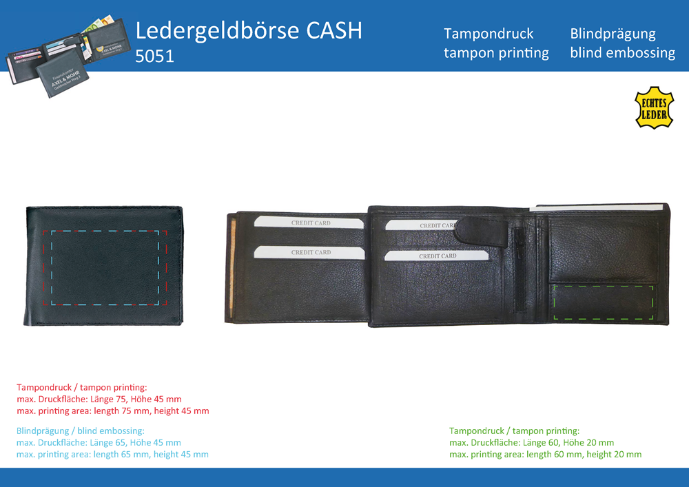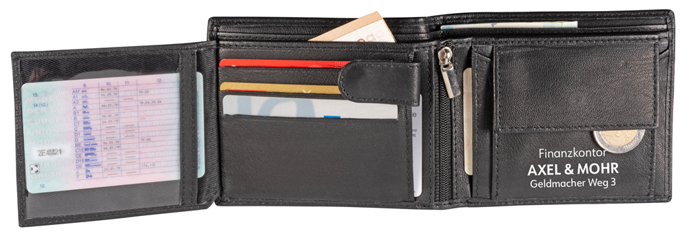Geldbörse "CASH" aus ECHTEM LEDER mit 8 Einsteckfächern. (Format: ca. 125 x 95 mm (geschlossen))