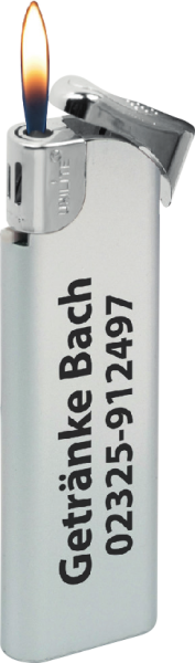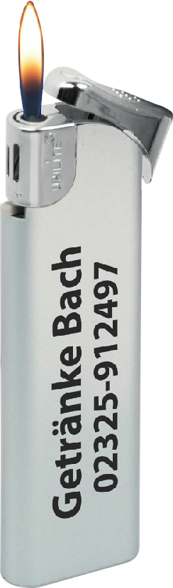 Elektronikfeuerzeug „MAX“, mit Silberkappe, nachfüllbar mit Flammenregulierung. (Format: 80 x 23 mm) mehr